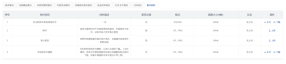 在报告书填报过程中,社会组织按照页面中提示的信息,结合自身实际情况进行填写即可。填写到最后一个tab页签,进行相应的资料上传。