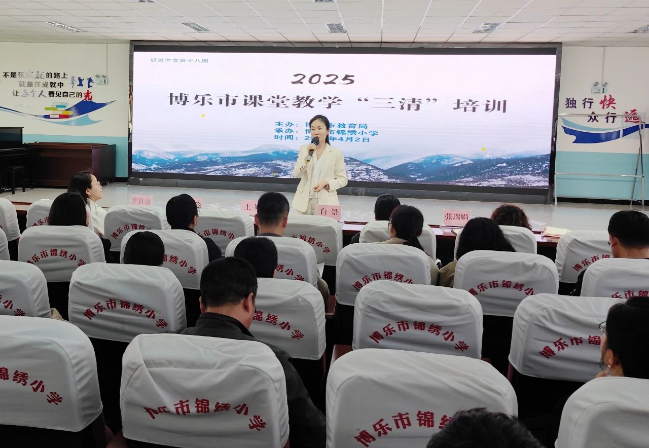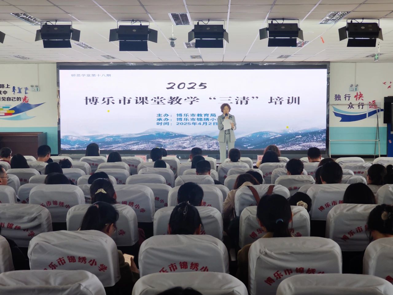 为大力推进博乐市义务教育教学改革国家实验区、自治区示范区建设工作,深入课堂教学改革,全面提升教育教学质量,4月2日下午,博乐市教育局在锦绣小学组织开展以“堂堂清、日日清、周周清”为核心理念的课堂教学“三清”专题培训会。全市各中小学书记、校长、教学副校长、教研主任及学科骨干教师等300余人齐聚一堂,共赴这场课堂教学“赋能之约”。