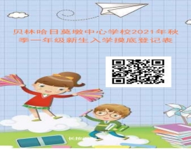 1、网上报名时间(7月28日-8月25日)家长可通过扫描贝林哈日莫墩中心学校一年级新生摸底登记表二维码实现网上报名,正确填写学生基本信息。
