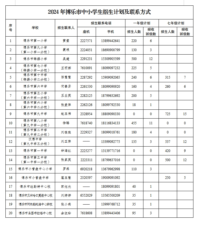 为深入贯彻落实《中华人民共和国义务教育法》和自治区教育厅《自治区义务教育阳光招生专项行动(2024)工作方案》等文件精神,现就博乐市中小学2024年秋季一年级、七年级招生及博乐市以外来博随迁子女转学等相关工作通知如下。