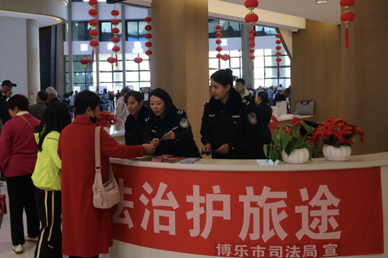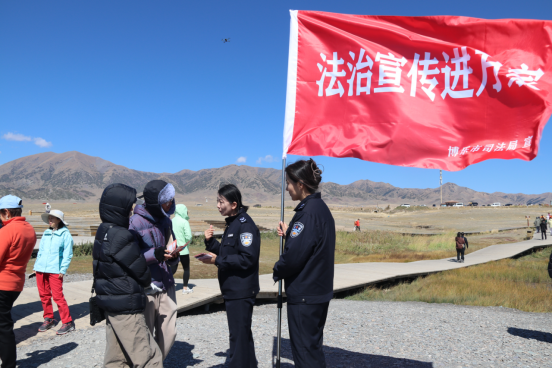为热烈庆祝自治区成立70周年,深入贯彻落实法治宣传工作,9月12日,博乐市司法局走进赛里木湖景区,面向游客和当地群众开展了一场以“普法入景区,法治护旅途”为主题的普法宣传活动。活动通过提供贴近民生的法治服务,有效提升了群众的法治意识,进一步铸牢了中华民族共同体意识。