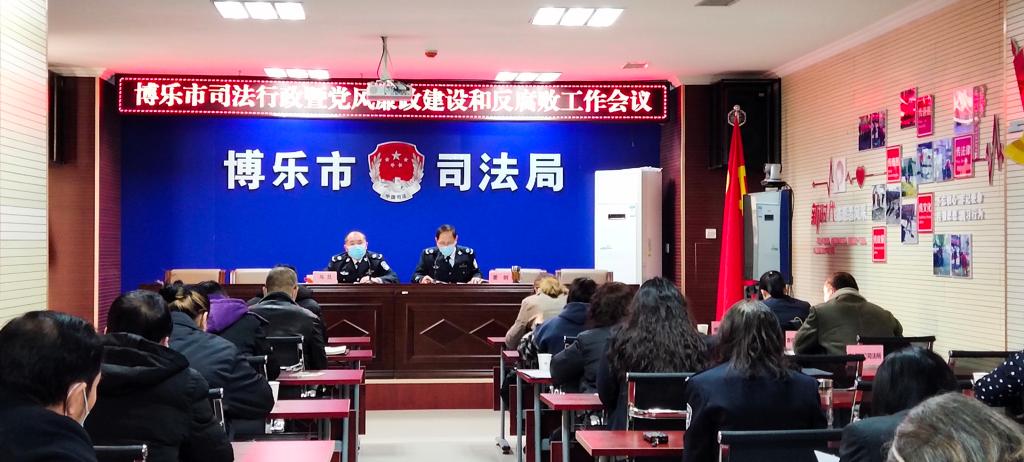 2月26日上午,博乐市司法局召开2021年全市司法行政暨党风廉政建设和反腐败工作会议。深入学习贯彻党的十九大和十九届二中、三中、四中、五中全会和第三次中央新疆工作座谈会精神,贯彻中央纪委十九届五次全会,自治区纪委九届六次全会、博州纪委十二届六次全会、博乐市纪委七届六次会议精神、州司法行政暨党风廉政建设和反腐败工作会议精神。各乡镇场、街道司法所所长、律师事务所、市公证处主任、局机关全体干部参加会议。会议由局党组成员、副局长姜剑同志主持。