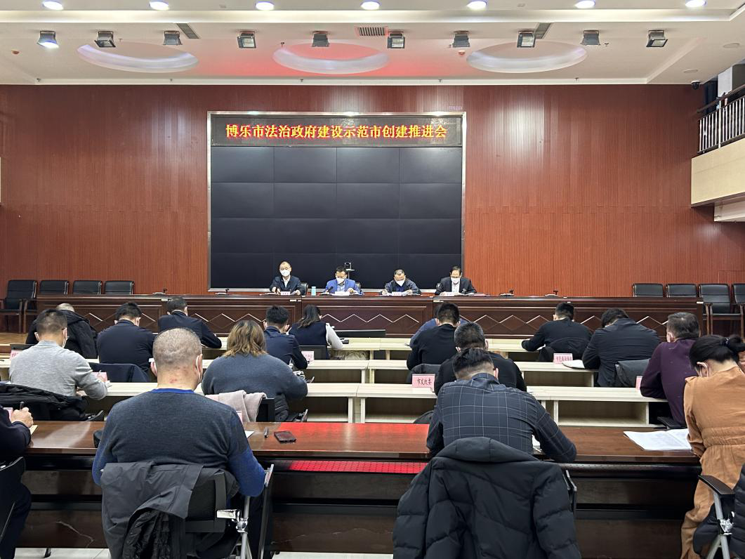 1月5日下午,博乐市召开法治政府建设工作推进会,全市乡镇街道和相关部门主要领导60余人参加了会议。会议在市公安局设立主会场,乡镇街道设立分会场。