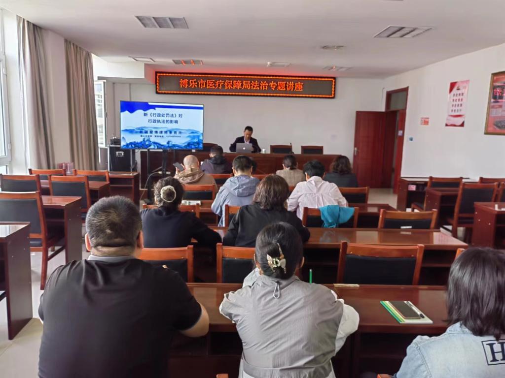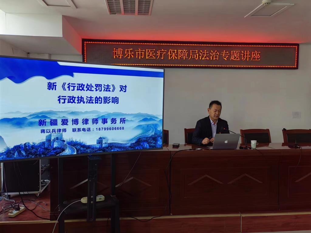 为进一步提高行政执法水平和行政执法人员执法素质,促进行政执法制度化、规范化和法制化。9月21日下午,博乐市医疗保障局诚邀新疆爱博律师事务所顾问蒋以兵律师对《中华人民共和国行政处罚法》的修订意义、相关法条等进行了讲解,为全局干部职工开展法律知识专题讲座。
