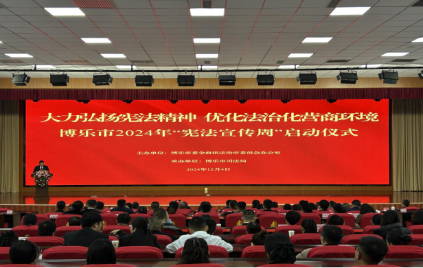 12月4日上午,由博乐市委全面依法治市办主办,博乐市司法局承办宪法宣传周活动正式启动,活动主题为“大力弘扬宪法精神,优化法治化营商环境”,自治区司法厅立法一处处长穆楠、博乐市公安局、市法检两院相关领导、强制隔离戒毒所、各乡镇场(街道)、市直各部门单位领导干部及市民群众参加启动仪式。