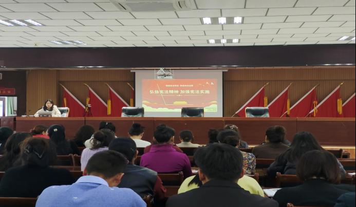 第一场活动为法治讲座。邀请博乐市爱博律师事务所吴新玉律师讲解法律知识,以宪法为核心,深入浅出地讲解了宪法的基本原则、公民的基本权利与义务,以及宪法在捍卫人民权益、维护社会稳定中的重要作用。通过一系列鲜活且贴近生活的案例,使得宪法知识变得更加接地气,便于群众理解掌握。活动现场还发放《中华人民共和国宪法》《中华人民共和国妇女权益保障法》《中华人民共和国反家庭暴力法》等普法宣传手册,向参会人员宣传普及等法律知识及相关政策。