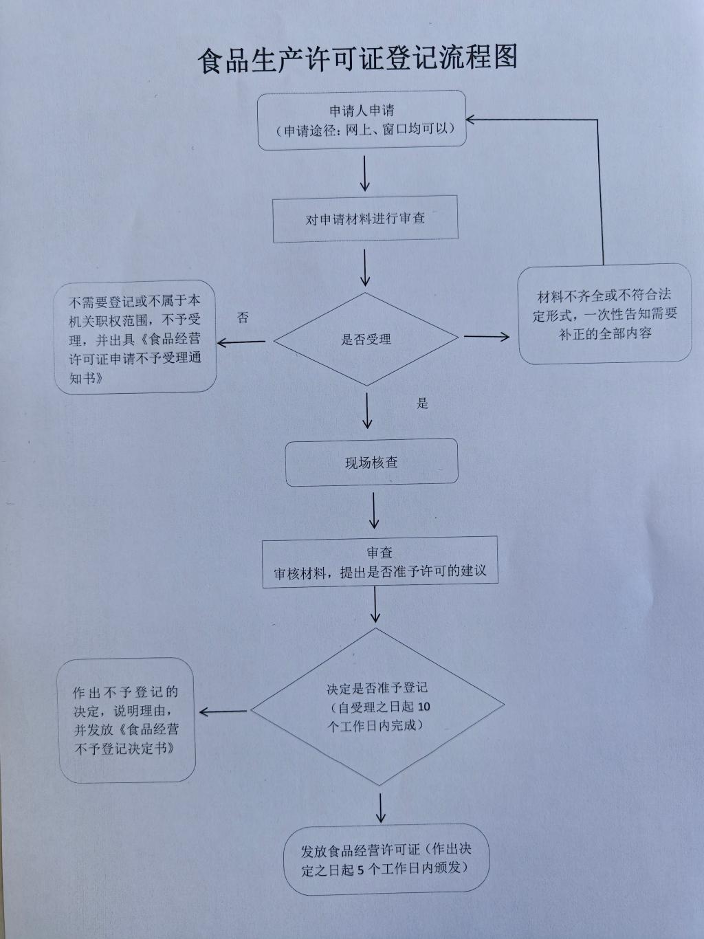 七、食品生产许可证登记流程图