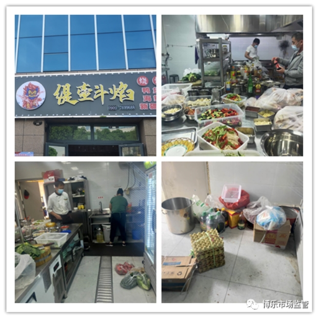 二次上榜原因:1、后堂卫生环境整体不达标,如:灶台台面油渍严重、炊具摆放杂乱、地面油腻;2、调料区摆放混乱;3、索证索票记录不全;4、未落实公筷公勺。