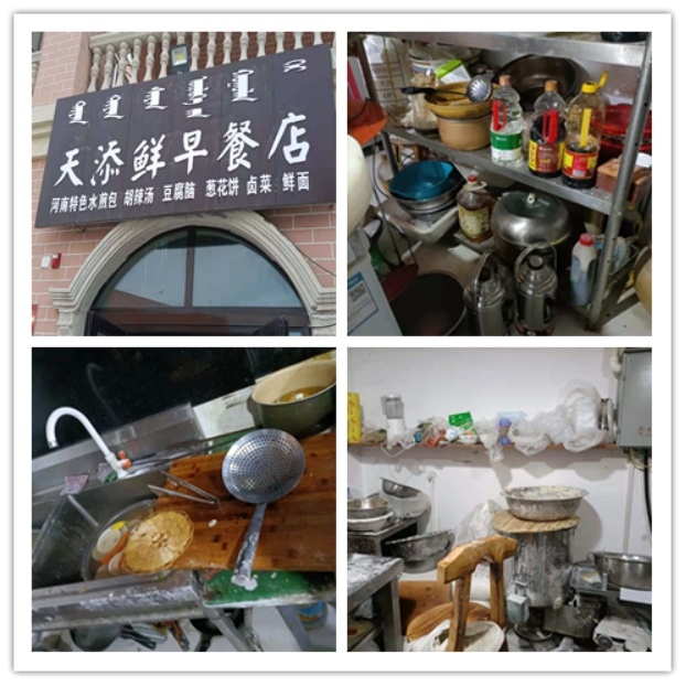 上榜理由:1、后堂卫生脏乱差;2、未归类摆放、物品摆放杂乱;3、操作台卫生脏乱。