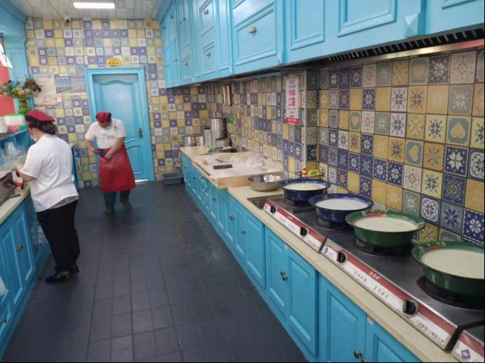 上榜理由:1.周边环境干净整洁;2.就餐环境优雅舒适;3.后厨干净,物品摆放整齐有序;4.展示柜食品分类储存。