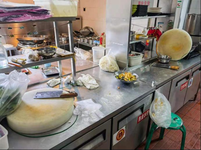上榜原因:后堂台面杂乱,电线私搭乱建,存在安全隐患