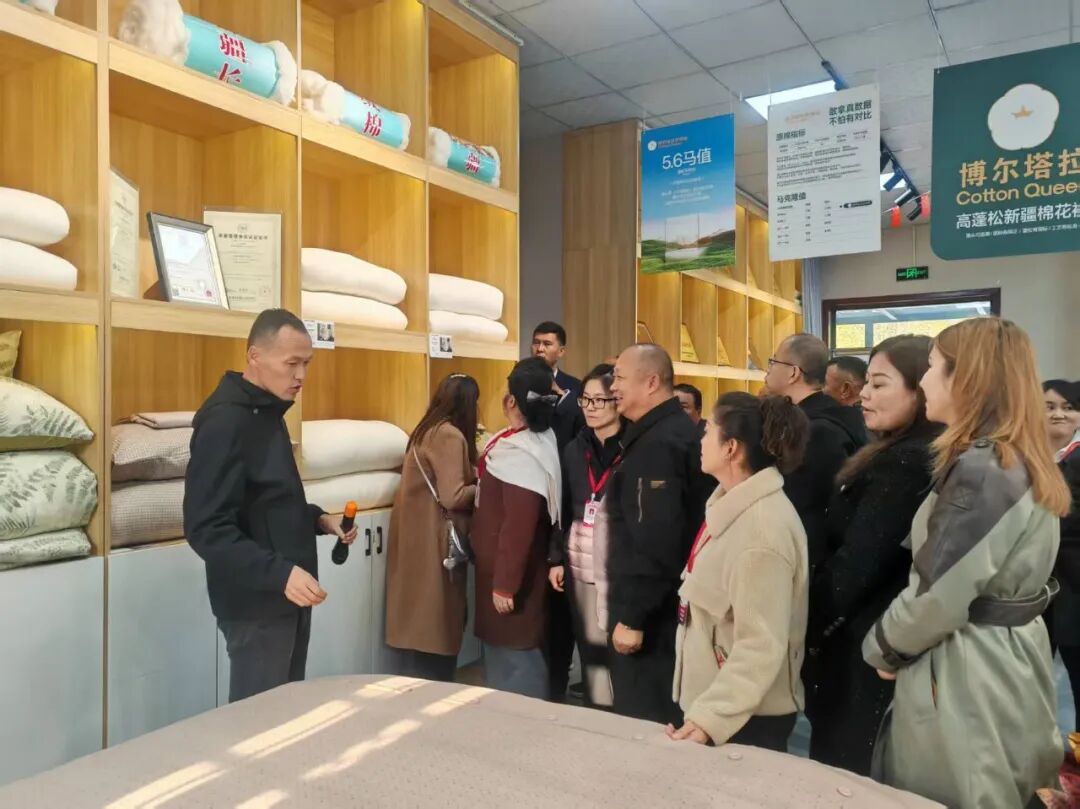 历史文化领域调研结束后,代表们的目光转向科技创新与工业生产领域。在博乐慧尔智联生物技术有限公司,代表们参观了研发展厅,听取企业在生物技术、智能制造等方面的创新成果汇报,对其坚持科技引领、推动产业升级的努力给予肯定。调研最后一站,代表们来到博乐市聚鑫家美纺织品有限责任公司。走进生产一线,了解企业生产经营、产品种类、吸纳就业等情况,并就如何进一步优化营商环境、支持本土企业发展听取企业的意见和建议。