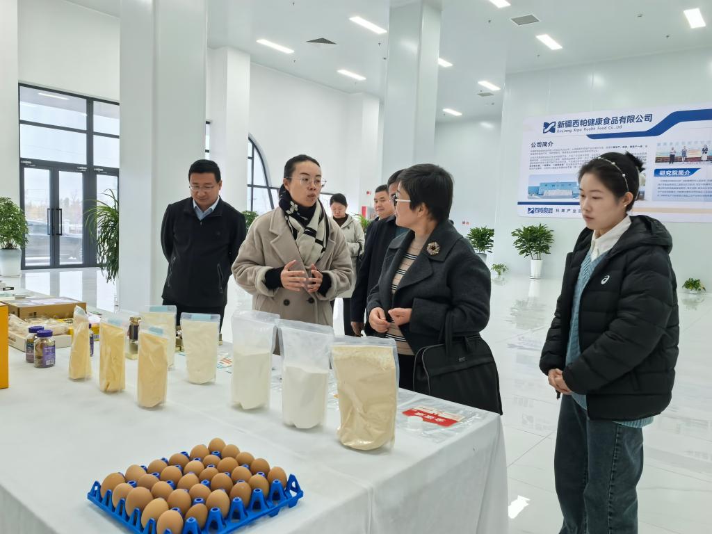 调研组参观了新疆西帕健康食品有限公司(以下简称“西帕食品”)的核心产品与技术成果展示,详细了解企业在蛋品精深加工及生物提取领域的研发突破与市场应用情况,询问了企业在科技创新、生产工艺升级、精细化运营管理及产业链协同建设等方面开展的工作,重点考察了西帕食品在畜禽加工副产品高值化利用方面的技术突破与产业化进展情况。