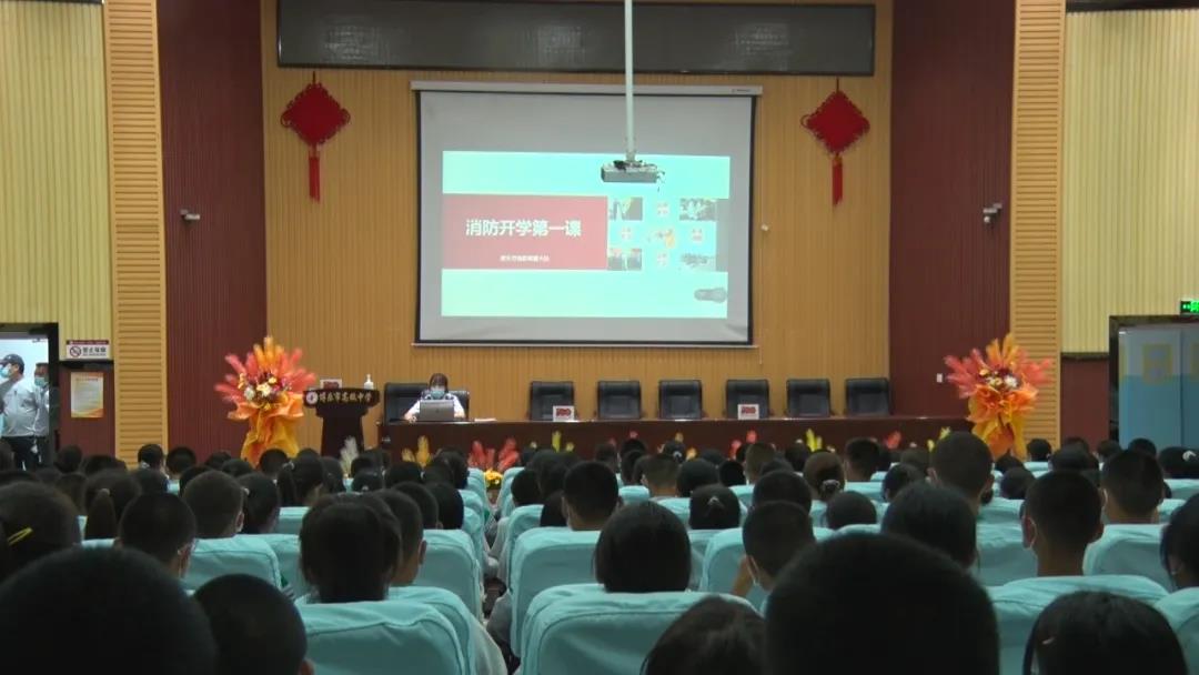 博乐市消防救援大队宣传人员深入博乐市高级中学(华中师大一附中博乐分校),对学校新入学的新生开展”开学第一课”消防知识宣传活动。