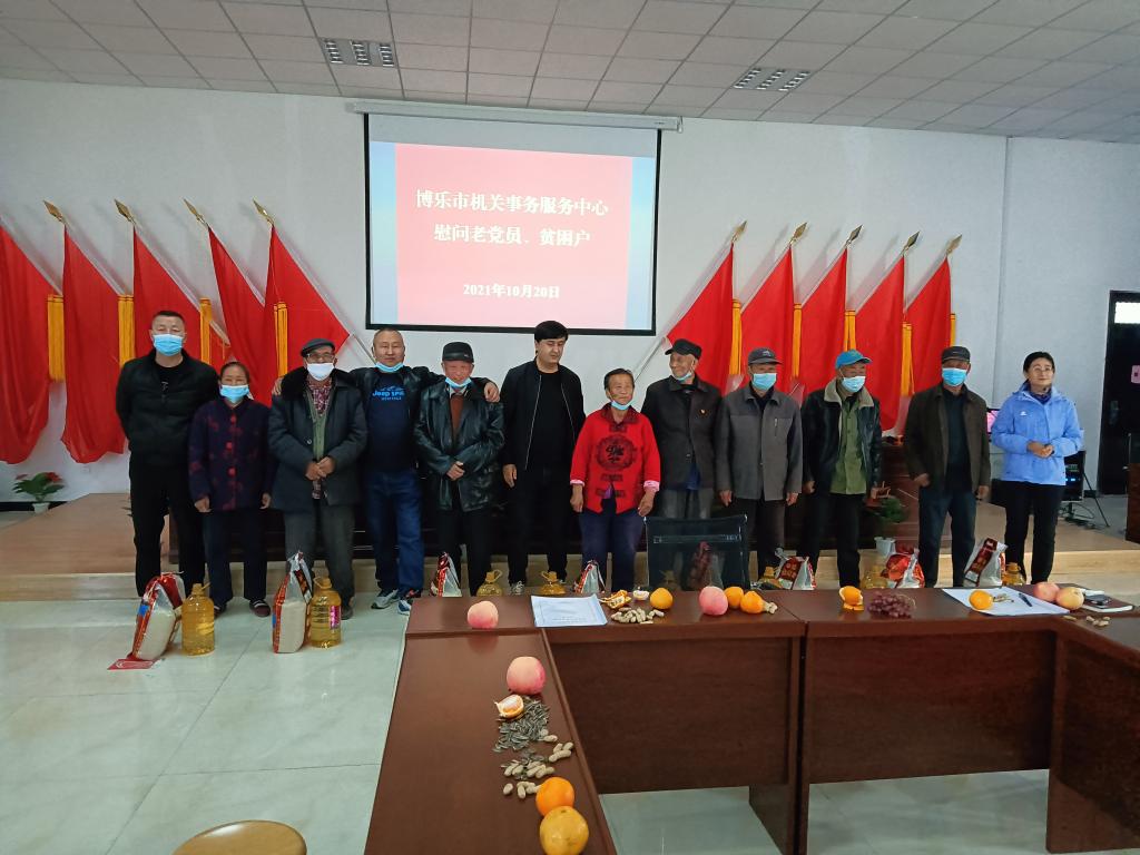 为弘扬中华民族尊老敬老、扶贫济困、崇德向善的传统美德,提高干部职工对民族团结、脱贫攻坚等工作重要性的深刻认识,10月21日,博乐市机关事务服务中心主任刘婷带领干部职工一行20人,前往达勒特镇查干苏木村,与驻村工作队员一起对查干苏木村和破城子村的贫困户、高龄老人以及独居老人等30户困难群众进行了走访慰问,送去了大米、面粉、清油等慰问品。每到一户,都详细询问他们的身体情况及生活现状,并鼓励他们要坚定信心和决心,通过自身努力和社会的帮助,早日走上致富之路,并充分听取了他们的所思所想,了解掌握了各家的帮扶措施落实情况。