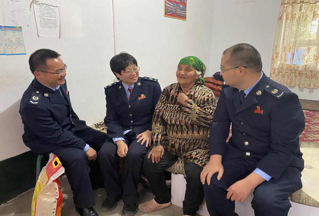 联谊活动后,大家先后来到乌兰托哈村脱贫户买来古鲁和帕提古丽家里,了解贫困户的身体健康情况,摸排贫困群众在生产生活中遇到的困难。与孤寡空巢老人拉家常,细心了解老人的日常生活,耐心地为老人讲述了日常安全知识,并为老人家中的水、电源等做了安全检查,特别叮嘱老人要保持乐观心态,保重身体,注意饮食卫生,同时为老人送去米面油等慰问品。