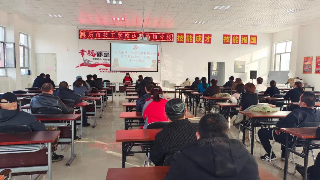 博乐市达勒特镇“孛罗古城”宣讲队成员阿米拉走进博乐市技工学校达勒特镇分校,紧紧围绕党的十九届六中全会的概况、背景、《中共中央关于党的百年奋斗重大成就和历史经验的决议》的基本内容、全会及决议的重大意义四个方面,为学员们作专题宣讲。本次宣讲主题鲜明、逻辑清晰,分析透彻、内涵丰富,为学员学懂、弄通全会精神作了一次高质量的辅导。