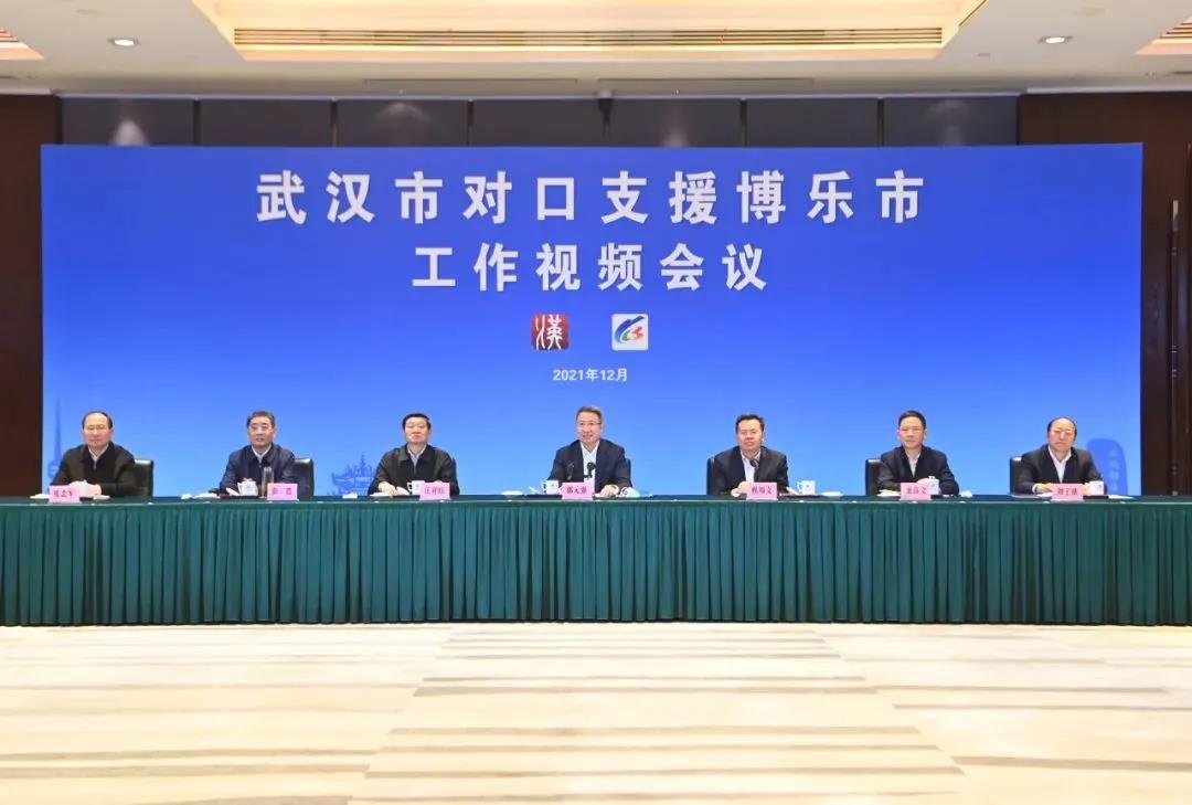 12月21日下午,武汉市对口支援博乐市工作视频会议召开。湖北省委常委、武汉市委书记郭元强主持会议并讲话。武汉市委副书记、市长程用文,博乐市党委书记李海军分别介绍相关工作情况。