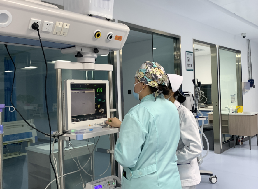 12月11日,记者走进重症医学科看到,现场干净整洁、宽敞明亮,配备开放床位16张,其中隔离病床6张。拥有有创/无创呼吸机20余台、经鼻高流量氧疗仪10余台、床旁血液净化机等先进设备。另外科室还开展了床旁超声技术,在无创操作下,时时动态评估患者的病情变化,结合血气分析等多模态监测手段,精准指导临床治疗,提升救治成功率。