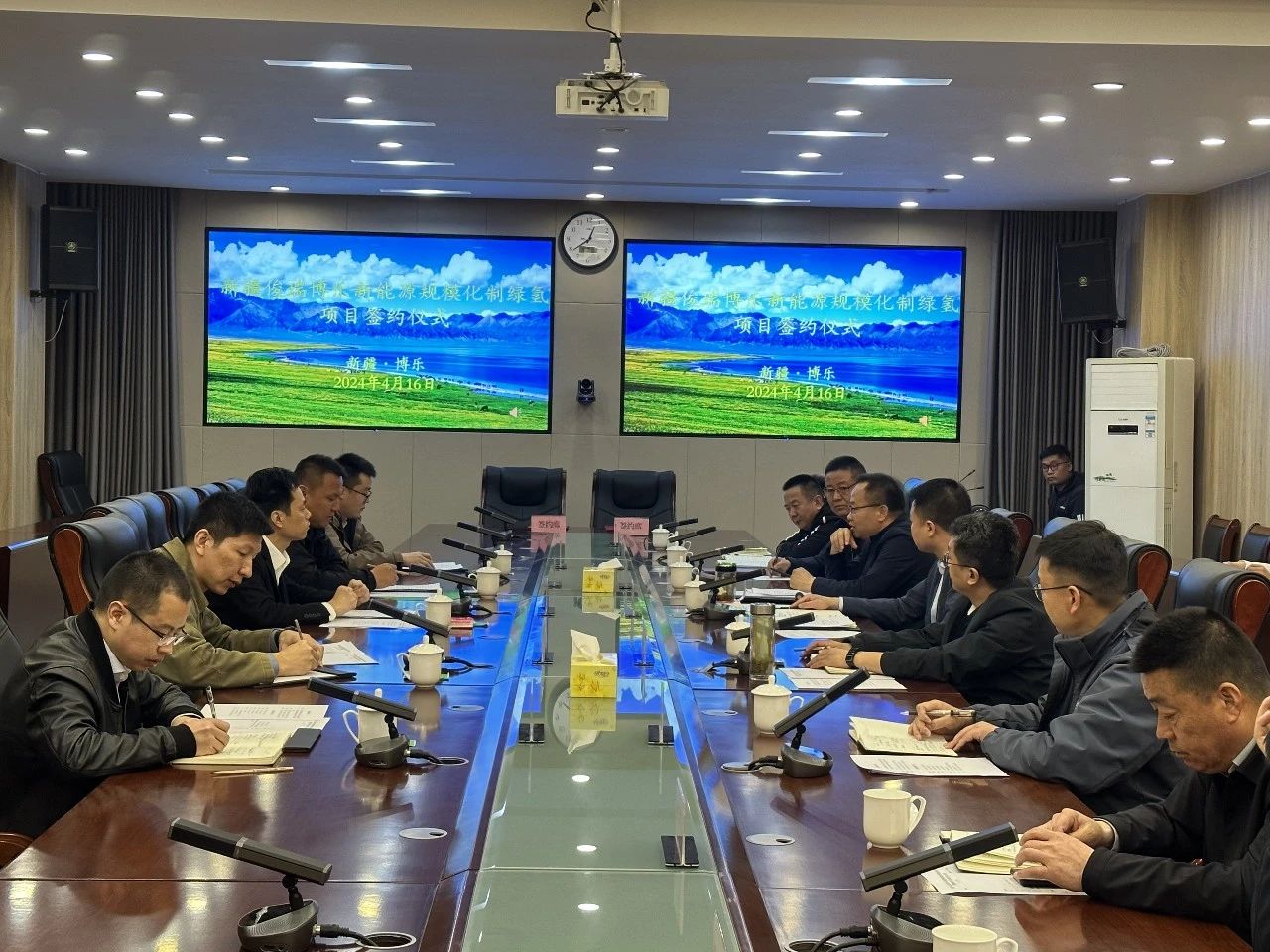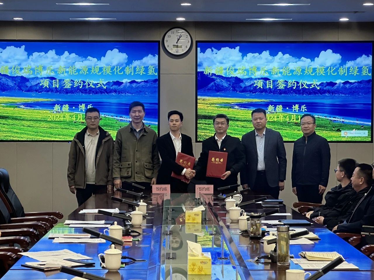 4月16日,博乐市人民政府与新疆俊瑞博乐新能源规模化制绿氢项目签约仪式圆满举行。博乐市委常委、常务副市长黄连军主持会议,市人民政府副市长邱静波与该企业负责人现场签约。