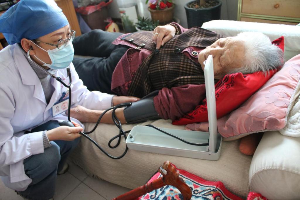 社区志愿者们在为辖区老人做人员登记时,发现很多高龄、孤寡老人由于行动不便,没有机会到医院接受健康体检,爱康医院的医护人员就携带着血压计、血糖仪、抽血设备等检查设备,前往辖区行动不便的老人家中,为他们进行上门免费体检服务。“老人家,您这个血糖7.3,属于偏高,平时饮食还得少盐少糖。”90岁的周淑芳老人是体检年龄最大的一位老人,因为高龄、代谢功能缓慢,平时又是一直卧床休息,耳朵不好,医生从饮食上为老家人提供健康指导并耐心告诉老人学会躺在床上做自我按摩保健常识。