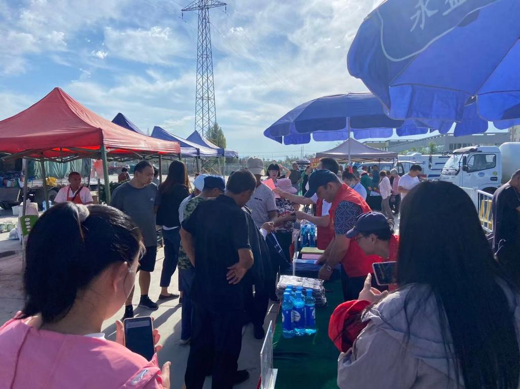 8月12日一早,博乐市乌图布拉格镇一周一次的集市上人来人往。其中,一处特别的摊位更是人影攒动,大爷大妈们自觉排起了长队,原来是乌图布拉格镇新时代文明实践所联合南城区街道新时代文明实践所共同开展的“文明新风进万家 六大习惯贵养成”新时代文明实践大巴扎活动吸引了人们的注意力,现场不仅有州市各级单位带来的志愿服务,还有围裙、调料盒、洗洁精、钢笔等实用又精美的小礼品免费赠送。