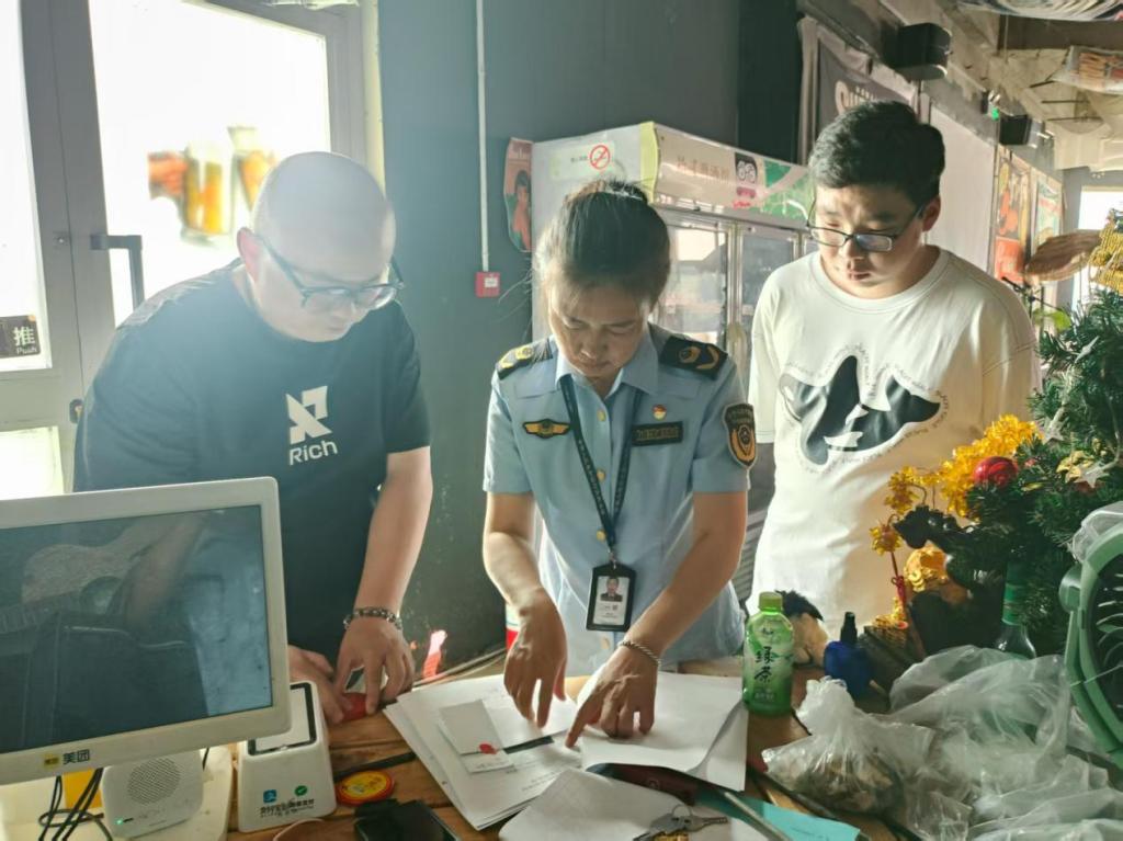 2025年7月28日,博乐市市场监督管理局执法人员正在调查一起涉嫌引人误认为是他人商品的苏打酒案,现场查获侵权苏打酒20件零18瓶。