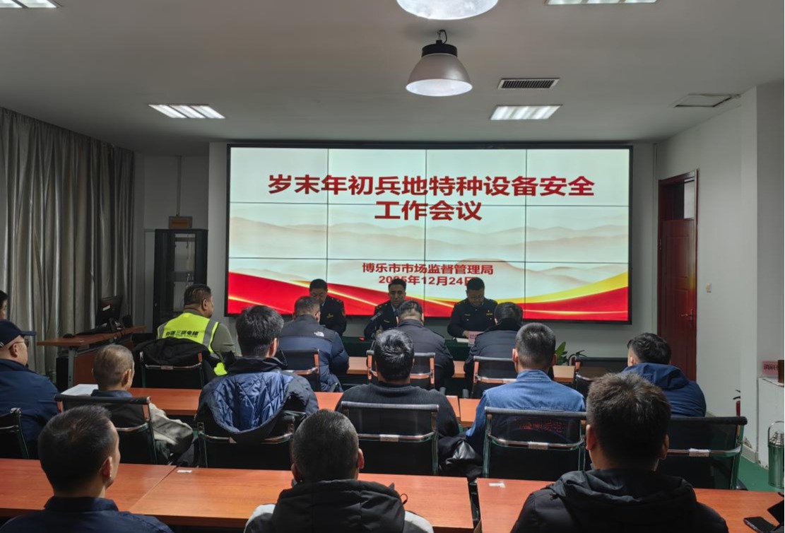 为切实拧紧岁末年初特种设备安全“安全阀”,深化兵地联动监管合力,12月24日博乐市市场监督管理局组织召开兵地特种设备安全工作专题会议,全市23家特种设备维保单位、10家物业公司负责人,双河市市场监管局特监科科长及博州特检所工程师等40余人参会。