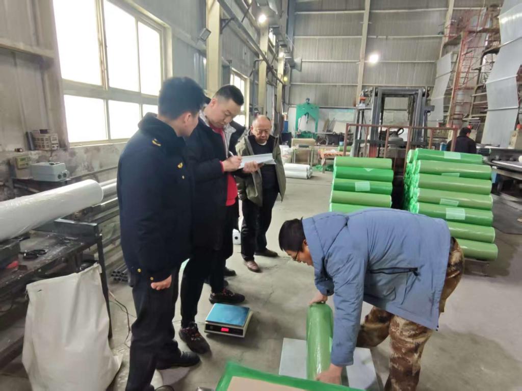 本次抽查聚焦净含量偏差、标注标识规范、计量准确性等核心指标,共完成5个批次地膜产品抽样检测,从严排查缺斤短两、计量不足、标注不规范等突出问题。在抽检同时,检查组现场宣讲《中华人民共和国计量法》《定量包装商品计量监督管理办法》等法律法规,督促企业严格落实计量主体责任,健全原材料验收、生产过程控制、出厂检验等全流程管理制度,引导企业诚信守法生产,自觉杜绝计量违法行为。