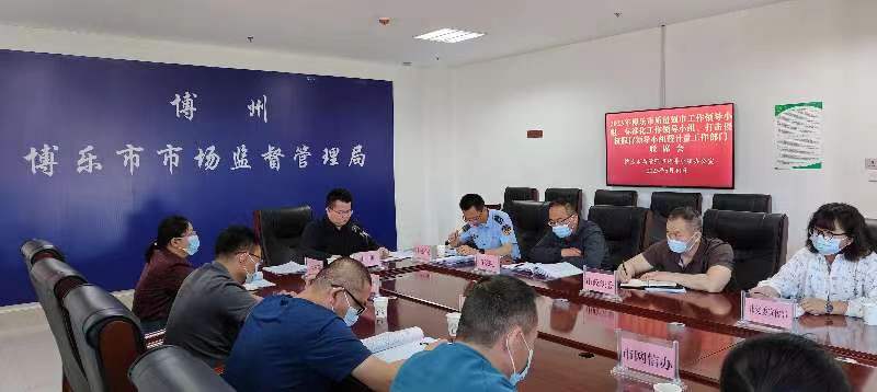 2023年5月30日上午,博乐市质量强市工作领导小组、标准化工作领导小组、打击侵权假冒领导小组暨计量工作部门联席会在博乐市市场监督管理局二楼会议室召开。博乐市市场监督管理局党组成员、局长李新鹏主持会议,博乐市党委常委、副市长胡刚出席会议。博乐市发改委、博乐市商工局等质量强市领导小组相关成员单位分管领导参加了会议。