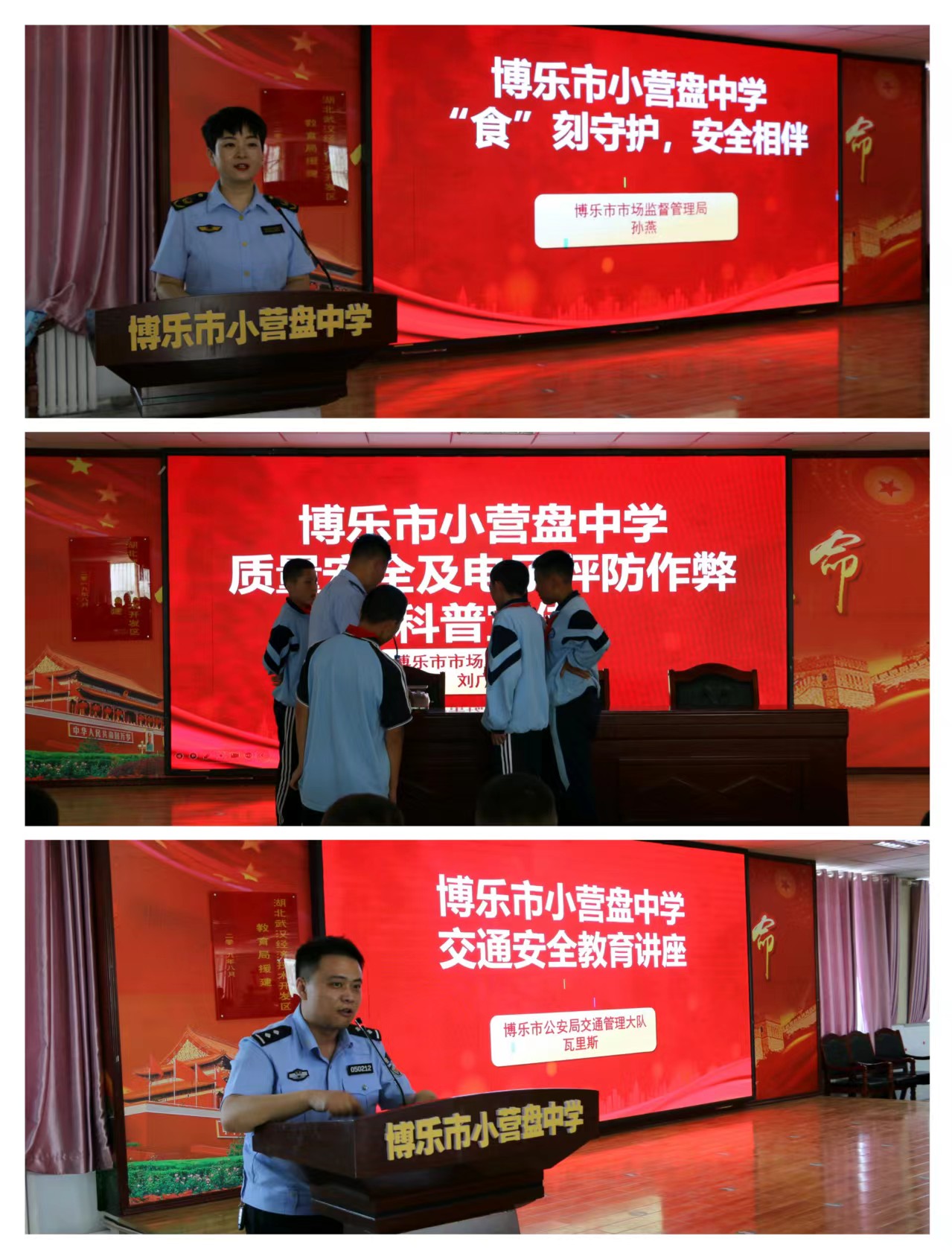 三是开设“三微”讲堂。博乐市市场监督管理局食品科干部孙燕、质量办干部刘广伟、市公安局交警大队宣传办主任瓦力斯三位同志结合端午节食品安全、“六一”儿童节文具用品质量识别、道路交通安全等主题为学生们开展了一堂生动详实的讲座。三名干部围绕现实生活中随处可见的生活用具、用“校园言语”,PPT、视频、实物相结合,向学生讲解食品、产品质量标准及质量不合格、不到16岁骑电动车、不遵守交通规则等带来的危害。孩子们化身“小小质量官、安全员”,角色扮演、互动体验、现场气氛活跃,宣传讲解形象生动、内容丰富,增强了学生们的安全意识,提升了自我保护能力。