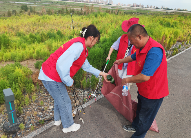 环保是一种意识,更是一种行动。志愿者们分工协作、共同发力,沿着河岸步道动起手中的拾物钳和扫把,将河岸旁的白色垃圾、烟头、塑料废品等垃圾杂物进行分类清理,合力打造干净整洁的河面和河边环境,以实际行动助力生态文明建设。