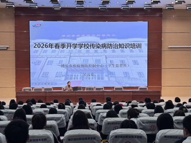 为切实筑牢春季校园公共卫生安全防线,全面提升校园传染病防控能力,守护全体师生身体健康和生命安全,近期博州疾病预防控制中心(卫生监督所)联合博乐市疾病预防控制中心(卫生监督所)走进博州职业技术学院开展春季校园公共卫生安全专题培训讲座,以专业力量为校园健康保驾护航。