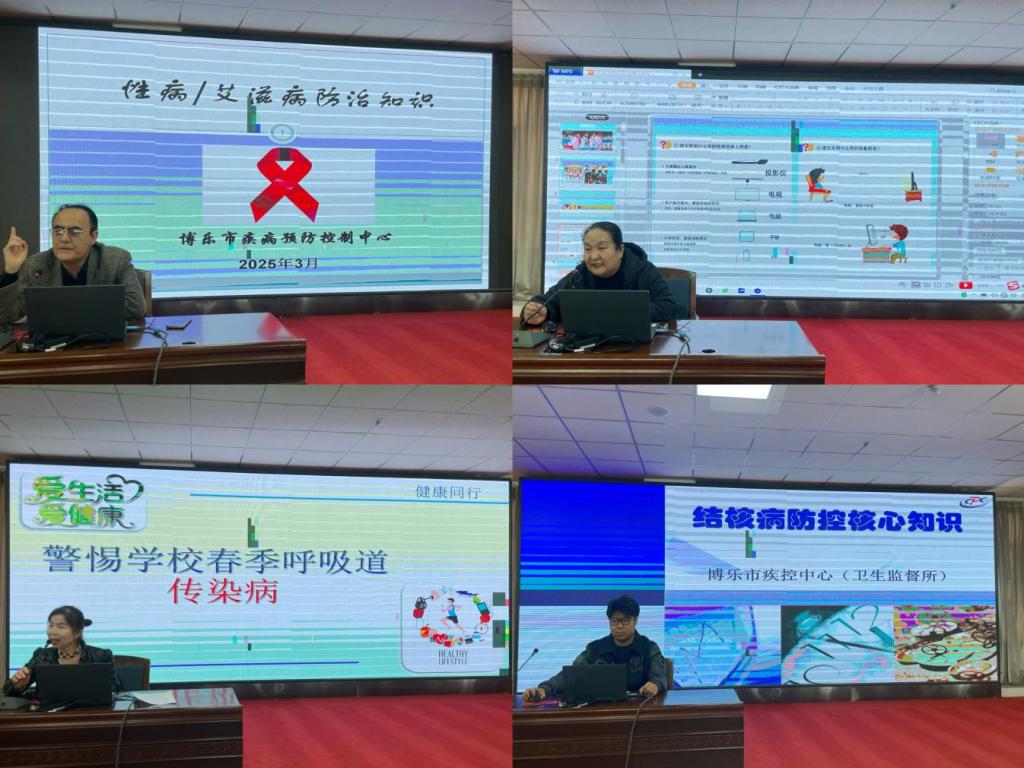 为有效预防和控制各类传染病在校园的传播,切实提高广大师生自我保护意识,博乐市疾病预防控制中心(卫生监督所)于2025年3月17日下午走进博乐市第六中学开展了一场内容丰富、形式多样的健康知识宣传活动。本次活动涵盖传染病防治、结核病防治、艾滋病防治、包虫病防治以及近视防控等多个内容,旨在为师生们普及健康知识,增强自我防护意识,营造健康、安全的校园环境,此次活动共有200余师生参加。
