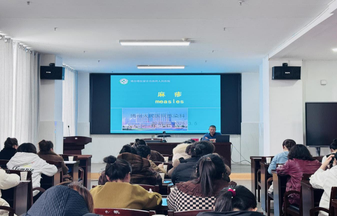 此次培训邀请了博州人民医院感染科主任殷萌结合临床工作实际对《出疹性疾病的诊断与鉴别》进行授课,详细分析出疹性疾病的流行特点、临床表现、并发症监测病例定义与分类,进一步加强参训人员对出疹性疾病的早期识别、诊断和防控能力。