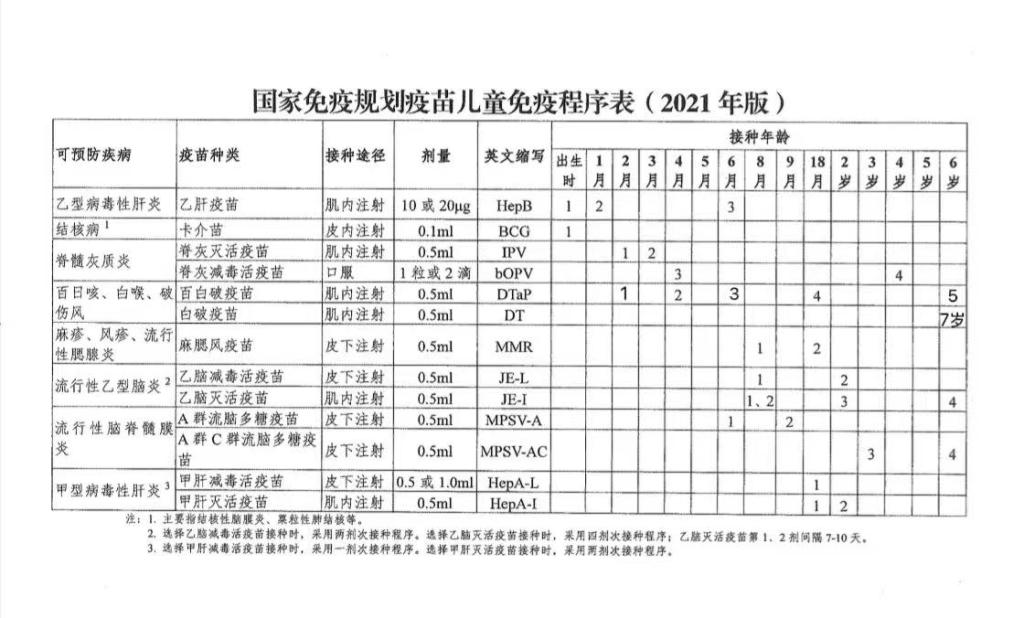 温馨提示:请各位家长对照国家免疫规划儿童免疫程序表接种程序进行自查。