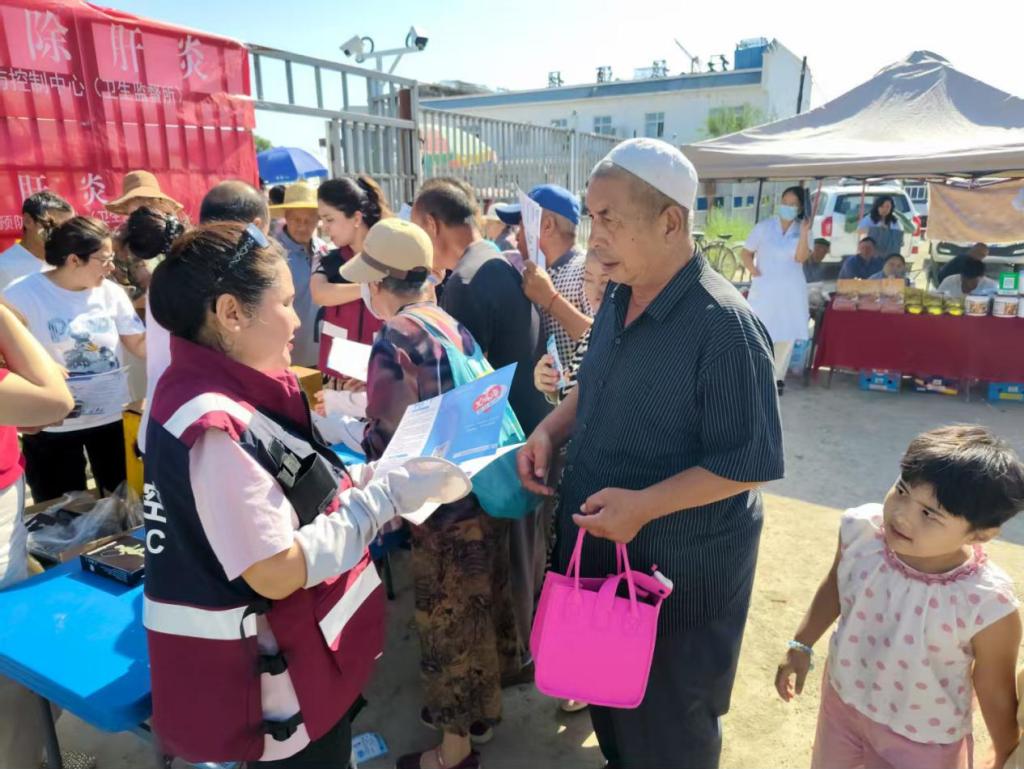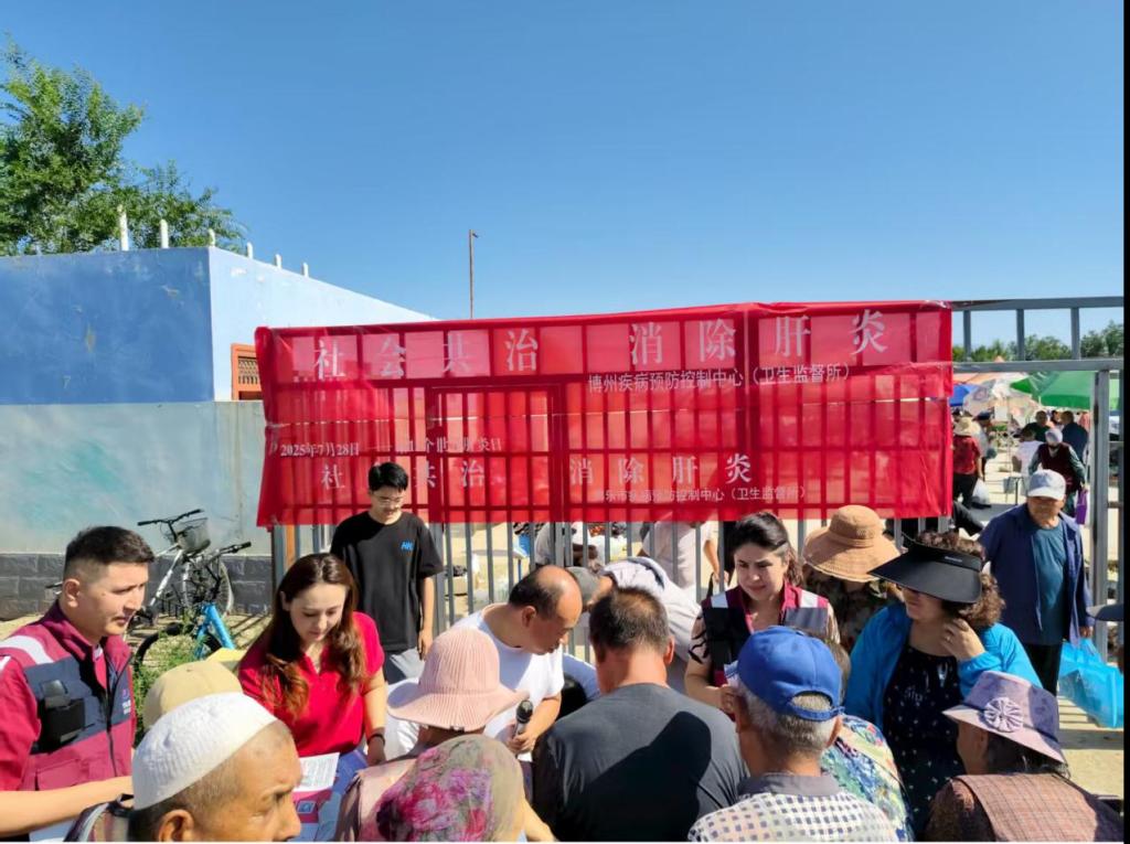 2025年7月28日是第15个“世界肝炎日”,今年我国宣传主题为“社会共治 消除肝炎”,旨在动员全社会共同参与,有效控制病毒性肝炎流行,减少相关肝硬化和肝癌发生及其导致的死亡,朝着“2030年消除病毒性肝炎公共卫生危害”目标迈进。为积极响应这一号召,进一步提升全民病毒性肝炎防治意识,增强全社会爱肝护肝理念,7月25日,博乐市疾病预防控制中心(卫生监督所)联合博州疾病预防控制中心(卫生监督所),走进小营盘镇集贸市场,开展了一场内容丰富、形式多样的宣传活动。