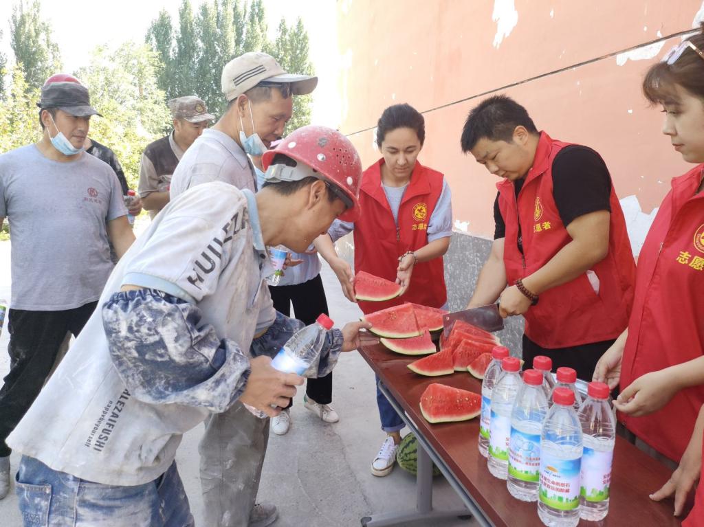 炎炎夏日,酷热袭人。7月21日,博乐边合区工业园区积极组织辖区志愿者开展“战酷暑、送清凉、助安全”慰问活动,志愿者们分别前往博乐市莹雪碳酸钙制造有限责任公司,博乐市鑫城油脂有限责任公司,博州金麦源粮油加工有限责任公司等为冒高温、战酷暑的生产一线职工送去夏日的清凉。工业园区干部为企业职工发放张贴安全生产宣传标语及高温防暑宣传标语的矿泉水,藿香正气水,西瓜等慰问品。