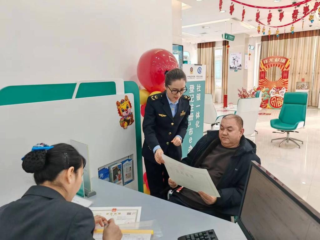 2月23日,博乐市“市e办”政银合作帮办代办服务网点揭牌仪式在中国农业银行博乐团结路支行举行,这也是博州首个“政银合作”帮办代办服务点。该网点的设立可解决各类市场主体“跑腿多、跑腿慢、跑腿杂”问题,可实现各市场主体“就近办”“马上办”。博乐市市场监督管理局将税务登记、银行开户、刻章与市场登记注册开办“一站式”服务有效融合,在中国农业银行博乐团结路支行设立“市e办”政银合作帮办代办业务,形成企业开办一站式服务,全力打通服务企业群众“最后一公里”。
