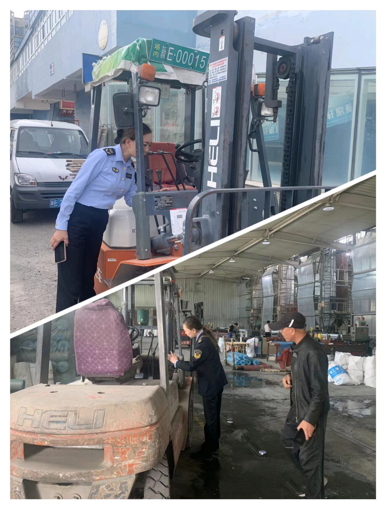 为确保惠企便民工作落到实处,深化专项整治工作,对博乐市辖区内叉车使用单位进行了全面逐一摸排,收集梳理企业基本信息、叉车和操作人员持证上岗、叉车安装检验和维保情况、安全技术档案和安全管理制度落实情况等,真正做到底数清、情况明、优服务、消隐患,同时积极解决企业瓶颈问题,对发现的问题及时进行分类处置,比如共性问题、个性问题或非市场监管职能问题等。目前,博乐市辖区有叉车使用单位123家、场内机动车194辆,已登记发证105家176辆,持证企业全部建立“一企一册”企业台账。此次专项行动,共检查叉车使用单位55家次60辆,责令限期整改并下发特种设备指令书53份(均已整改完毕),坚决杜绝带“病”运行。