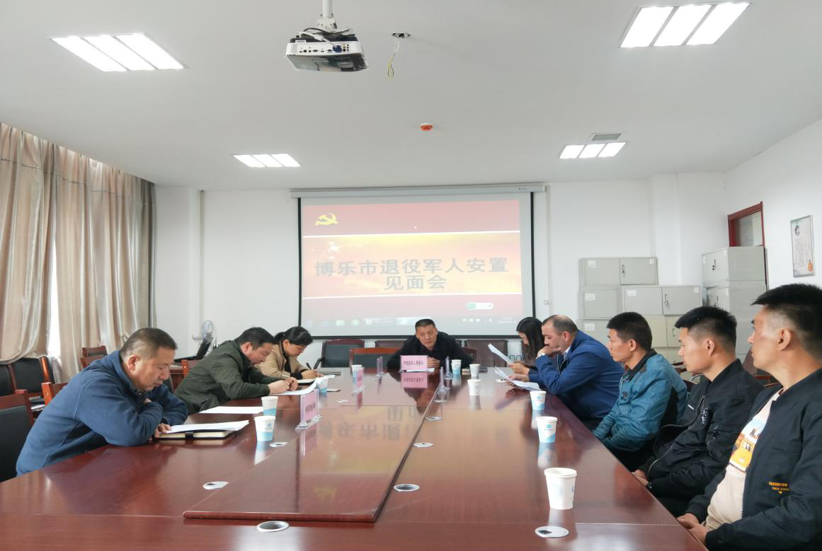 4月22日下午,博乐市退役军人事务局召开2019年退役军人安置见面会。见面会由退役军人事务局党组书记、局长田凯主持,组织3位符合安置条件的退役军人与党办、财政局、审计局等单位进行见面,本次会议详细讲解了退役军人安置相关政策文件及相关工作流程,有利于退役军人更全面的了解相关政策,切实保障了退役军人合法权益。