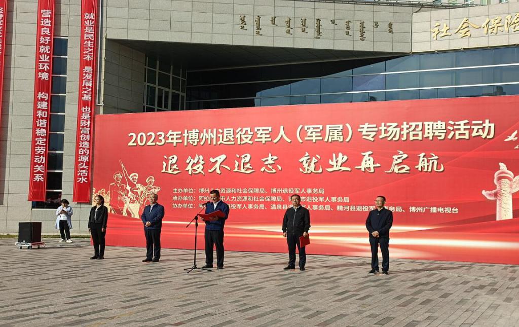 博州人力资源和社会保障局党组成员、副局长王文江同志宣布退役军人军属专场招聘活动正式开始。