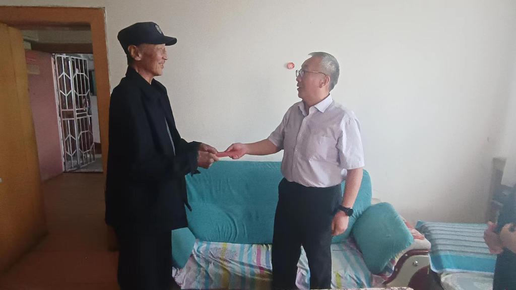 为切实帮助困难退役军人排忧解难,2023年9月13日上午,博尔塔拉蒙古自治州退役军人事务局党组副书记、局长孙钢,博乐市退役军人事务局党组书记、副局长古丽拜克热木专程到顾里木图街道爱博社区看望困难退役军人布仁得力格,并为其家庭送去5000元助学金。