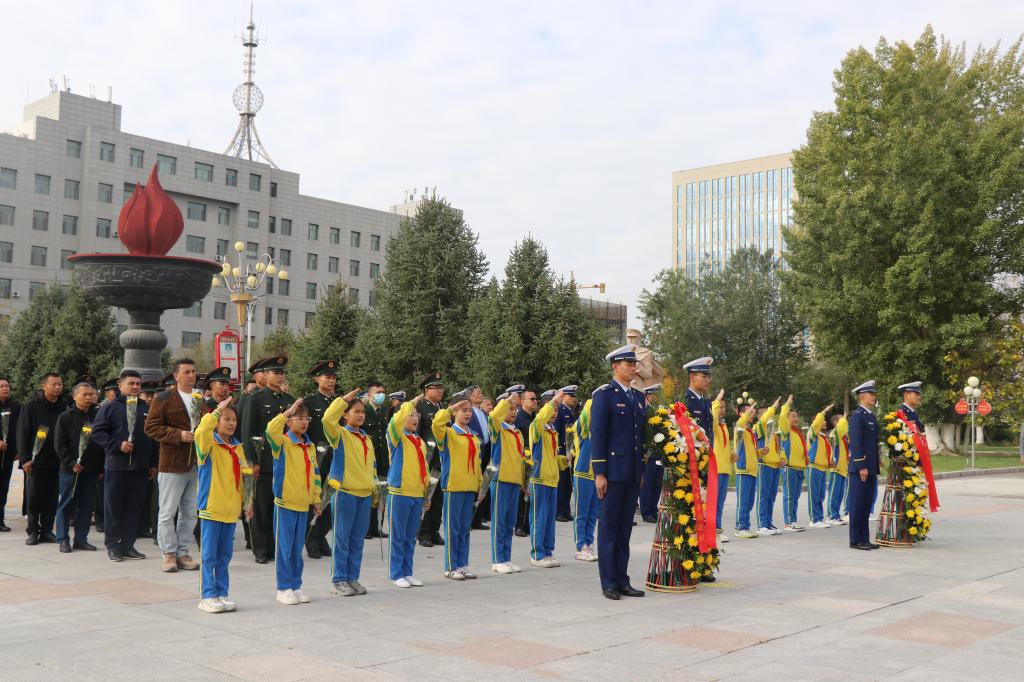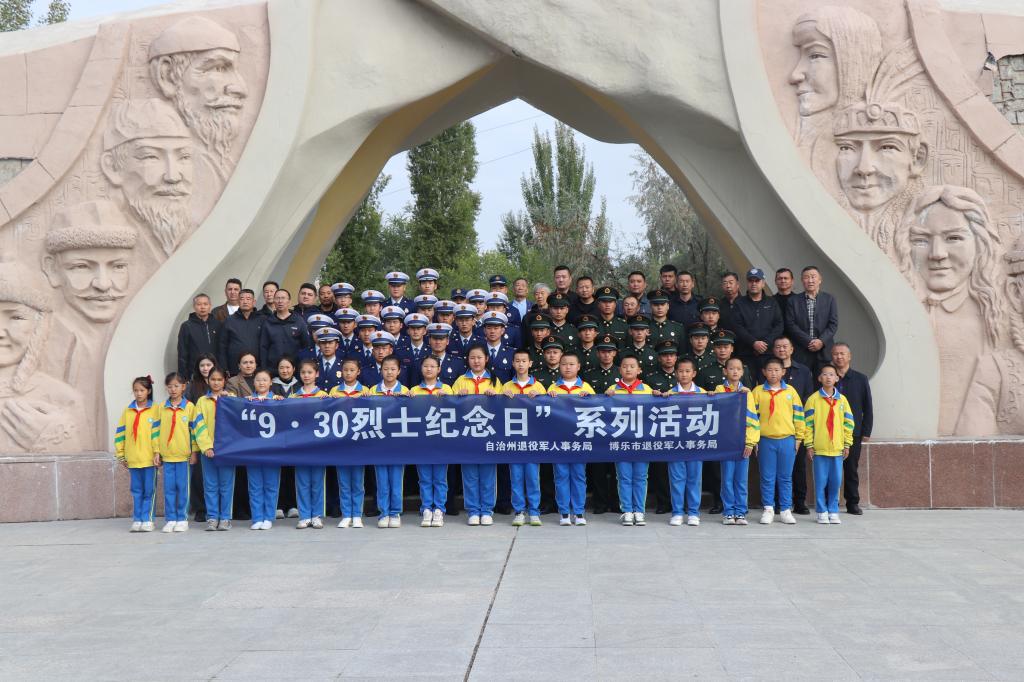 为庆祝中华人民共和国成立75周年和纪念第11个“9·30烈士纪念日”,9月30日,“缅怀革命先辈弘扬英烈精神”“9·30烈士纪念日”主题活动在博尔塔拉纪念园举行。自治州、博乐市退役军人事务局全体干部职工、市人武部代表、市爱国拥军促进会职工代表、市消防救援大队指战员、驻博部队官兵代表、退役军人代表、烈士遗属代表、少年代表等100余人参与活动。
