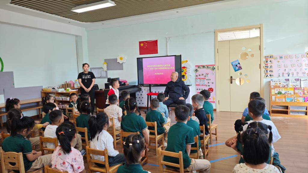 9月3日上午,博乐市锦绣幼儿园开展以“铭记历史,吾辈自强”为主题的抗日战争胜利纪念日主题宣讲活动。参战老兵薛荣和讲述了自己的战斗故事。