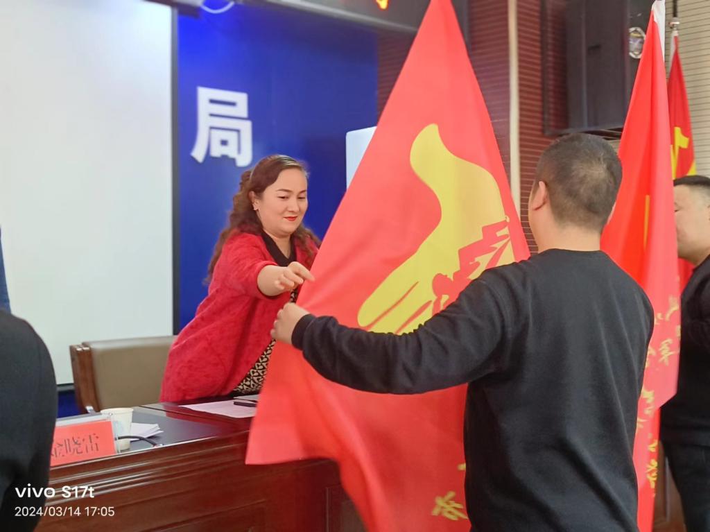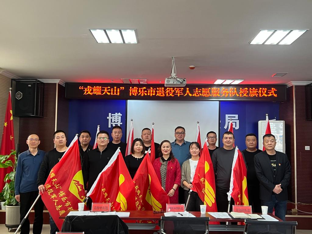 随后,博乐市退役军人事务局班子成员分别向“戎耀天山”退役军人志愿服务队授旗,各乡镇场、街道退役军人服务站站长、分管负责同志接旗。下一步,博乐市退役军人事务局将从提高思想教育、推动长效机制、打造过硬队伍等方面做起,引导退役军人融入社会建设,投身志愿服务队伍。也将进一步提升退役军人服务保障能力,充分发挥退役军人“排头兵”作用,筑牢思想政治引领“生命线”,激励引导退役军人退役不褪色、建功新时代。