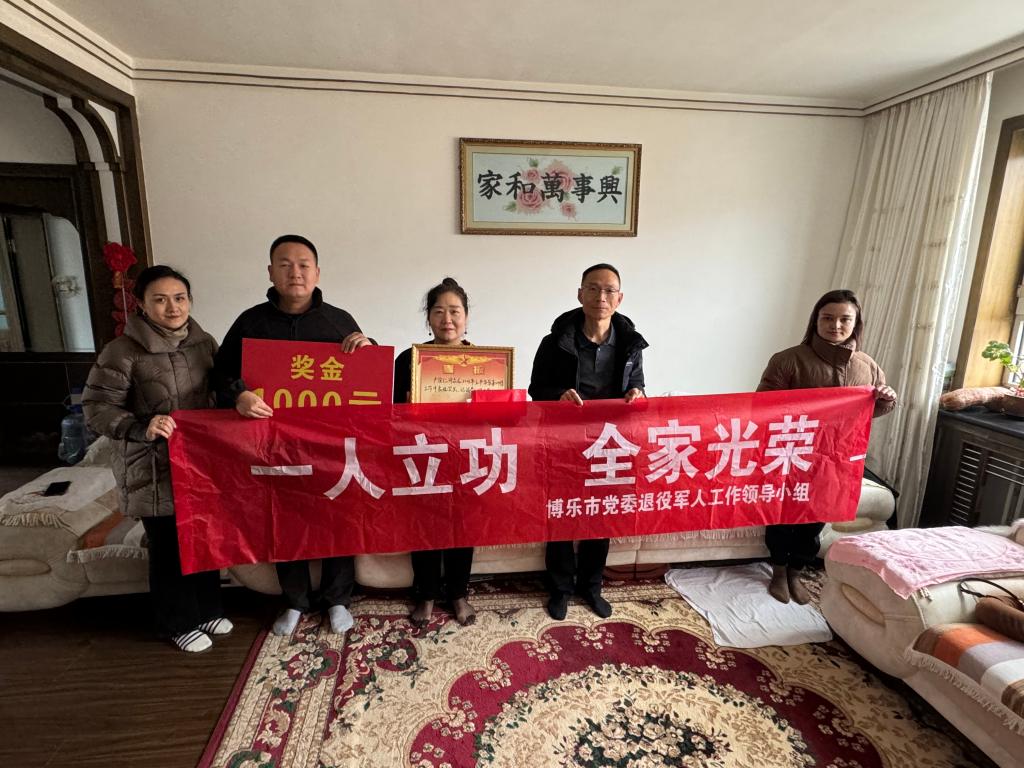 为进一步弘扬新时代拥军优属的优良传统,营造爱国拥军的浓厚氛围,博乐市退役军人事务局开展为荣立“三等功”家庭送喜报活动。