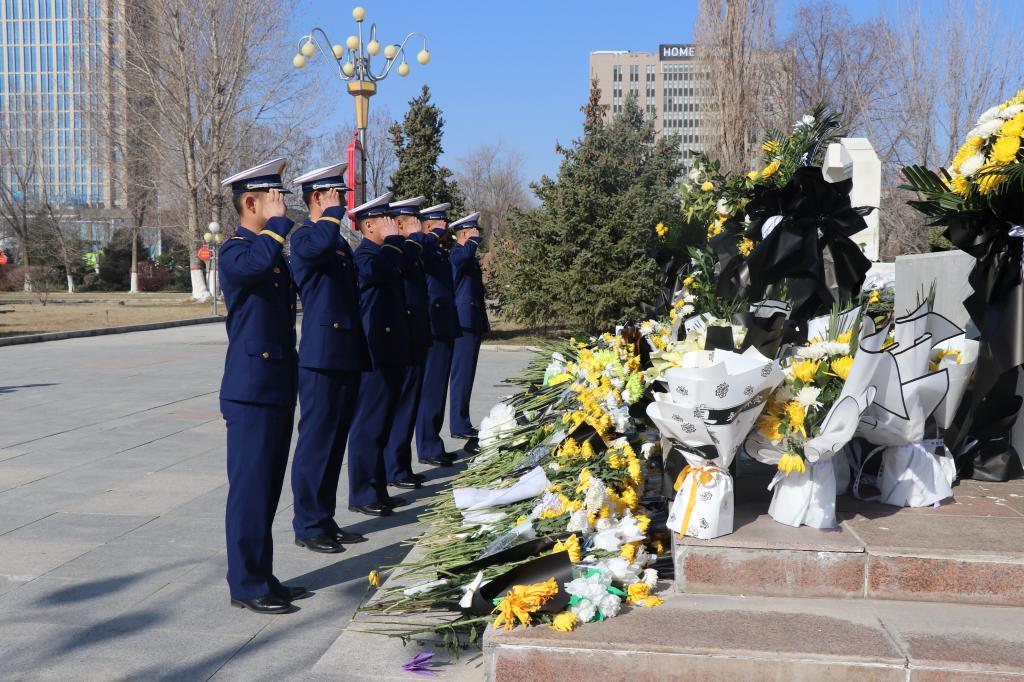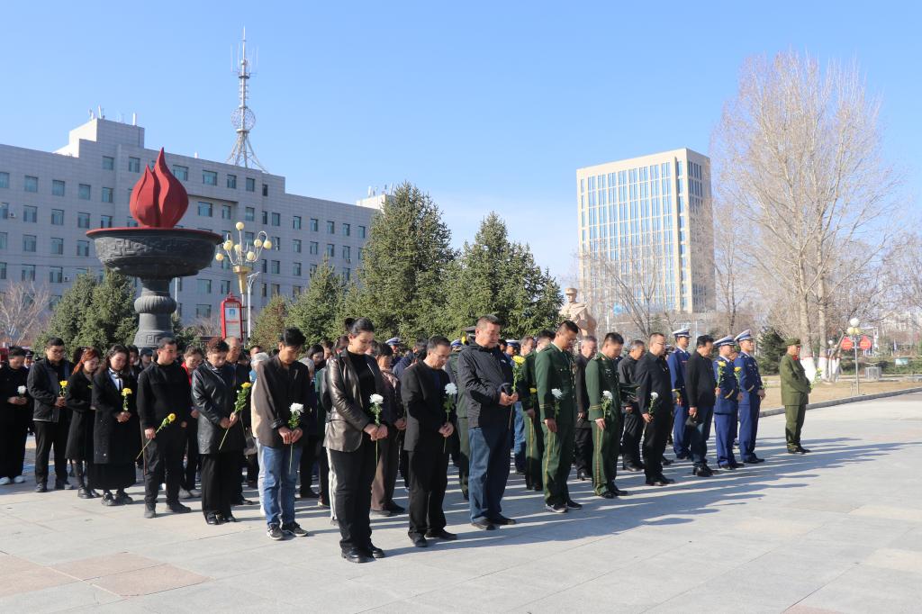 万里长空忠魂在,悲风泣雨寄哀思。烈士纪念碑前,全体人员列队整齐,神情肃穆,通过向纪念碑敬献花束、鞠躬致敬、宣读祭文以及瞻仰纪念碑等方式,表达对革命先烈的崇高敬意和深切缅怀。