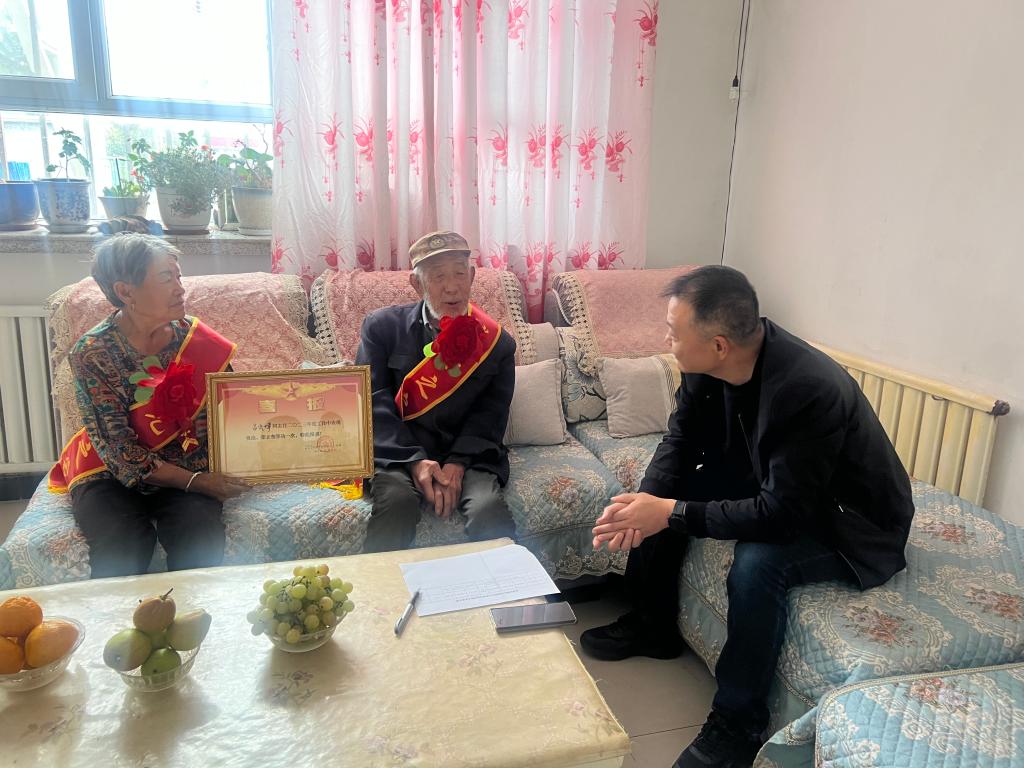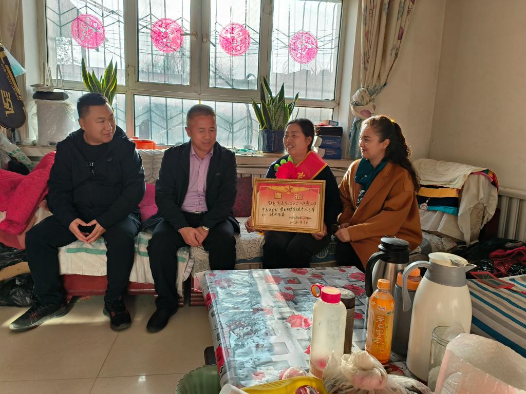 近日,博乐市退役军人事务局联合贝林哈日莫墩乡退役军人服务站,为荣立三等功现役军人吕超、吕成博家属送去立功喜报和慰问金,让军属共享荣光。