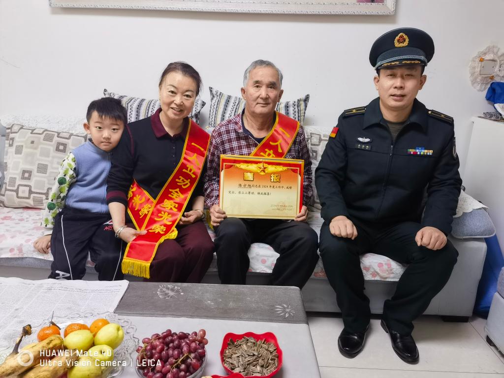 新春将至,情暖寒时。军营立功显荣光,喜报千里传家乡。1月23日上午,中国人民解放军96746部队领导、博乐市退役军人事务局和南城区街道退役军人服务站相关负责人来到了“三等功臣”陆方旭家中送去立功喜报及慰问金,对他在部队取得的优异成绩表示热烈祝贺。